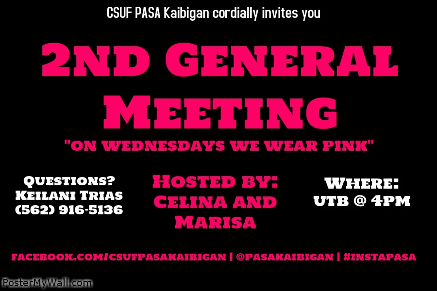 Come out to our second general meeting to hear more about our events for this coming month! Learn about Members' Retreat, Norcal Trip, Friendship Games, Filipino Culture, AKA (Ate Kuya Ading) Applications, and more!