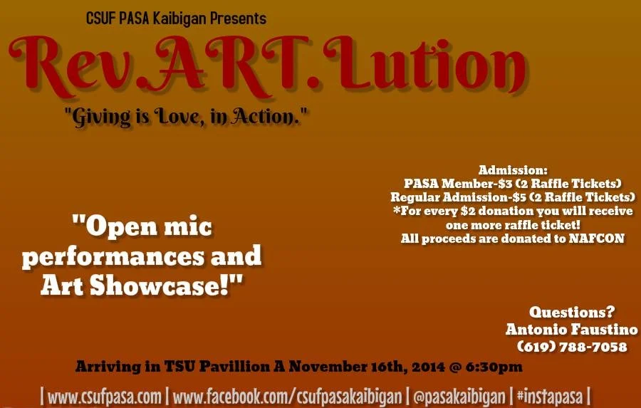 CSUF PASA Kaibigan invites and presents to you Rev.Art.Lution: Giving is Love, in Action!