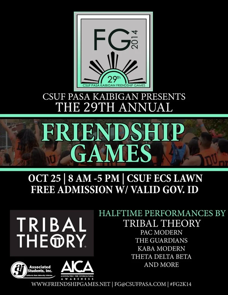 Hi Kaibigans! Come celebrate SPIRIT, PRIDE, UNITY, & FRIENDSHIP at the 29th Annual 2014 Friendship Games. Hosting over 6,000 attendees from over 40 different colleges, FG is one of the largest student-run events to celebrate Filipino-American culture in the nation. Don't miss out on all the fun!